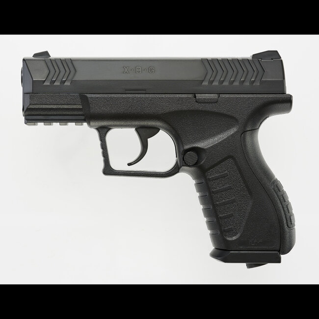 The Umarex XBG has a 19-shot drop-free metal magazine (SKU: 2253517) for quick reloading and is powered by a single 12g CO2 capsule. This lightweight, compact BB pistol has fixed front and rear sights and shoots in double action at 410 FPS.
